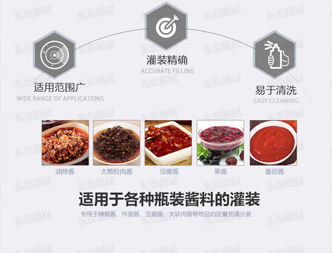 辣椒醬灌裝機是由我公司自主研發,臥式攪拌,可以很好的解決大顆粒物料灌裝過程中油料分離過快而導致的灌裝誤差大等難題。主要適用于粘稠醬料,如麻辣醬、香辣醬、牛肉醬、豆辨醬、黃豆醬、豆豉醬等醬料產品。在包裝過程中,海鮮醬灌裝機可以實現產品從原料進入到包裝機械開始,經過一些列生產活動構成的路線,從而達到無人化自動包裝。如果您有需要,可以和我們聯系