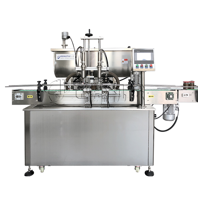 3、 該設備在設計上大大縮短了下料斗到灌裝頭的灌裝距離,克服了含油量大的物料(如:含芝麻粒的辣椒油)在灌裝過程中出現的有些瓶油多,有些瓶醬多的灌裝誤差大的缺點。
